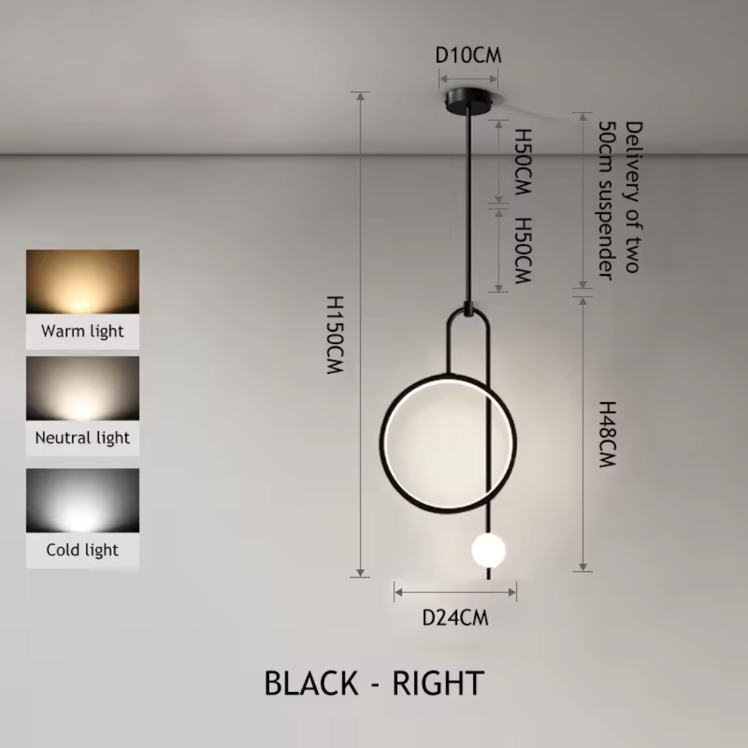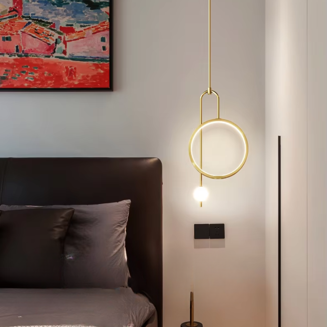 Sleek modern pendant light featuring a gold and black iron ring design.