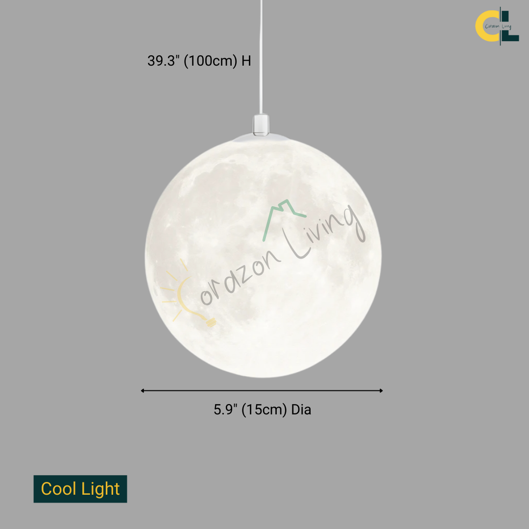 Illuminate your space with celestial charm using this Moonlit Modern 3D Printed Moon Pendant Light. Designed with advanced 3D printing technology, the spherical moon lamp replicates the surface of the moon in stunning detail, creating a warm and romantic ambiance. This modern-style LED hanging light is ideal for bedrooms, dining rooms, living rooms, bars, restaurants, or even children's rooms, adding a touch of personality and wonder to any interior. Whether used as a focal point or ambient lighting, this moon pendant brings elegance and creativity into your decor.