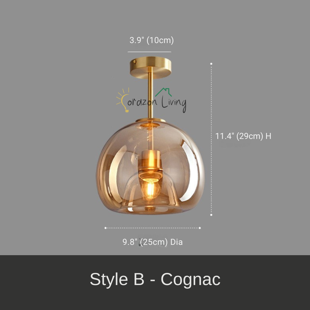 This ceiling light features a sleek glass design, offering bright style, even illumination for any modern space.