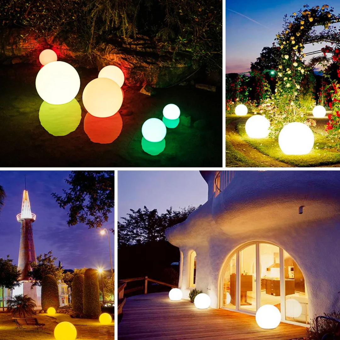 Create magical outdoor settings with the Orbix Waterproof LED Garden Ball Light, perfect for enhancing any garden, lawn, swimming pool, or patio area. Designed for both decoration and functionality, this versatile floating LED ball delivers vibrant RGB color plus white lighting to elevate outdoor parties, weddings, bar events, birthdays, or holiday celebrations. With its waterproof and rechargeable design, it's ideal for use in or around water—whether placed on grass, pool surfaces, or pathways. Durable and energy-efficient, these glowing garden lights add a modern, festive touch to any space, day or night.