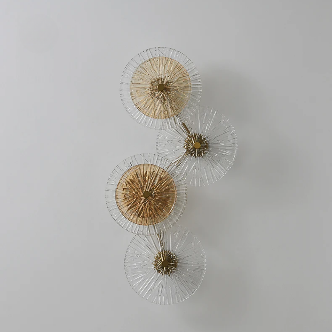 A sleek glass wall light featuring a round or lotus-inspired form, blending postmodern elegance with soft ambient illumination.