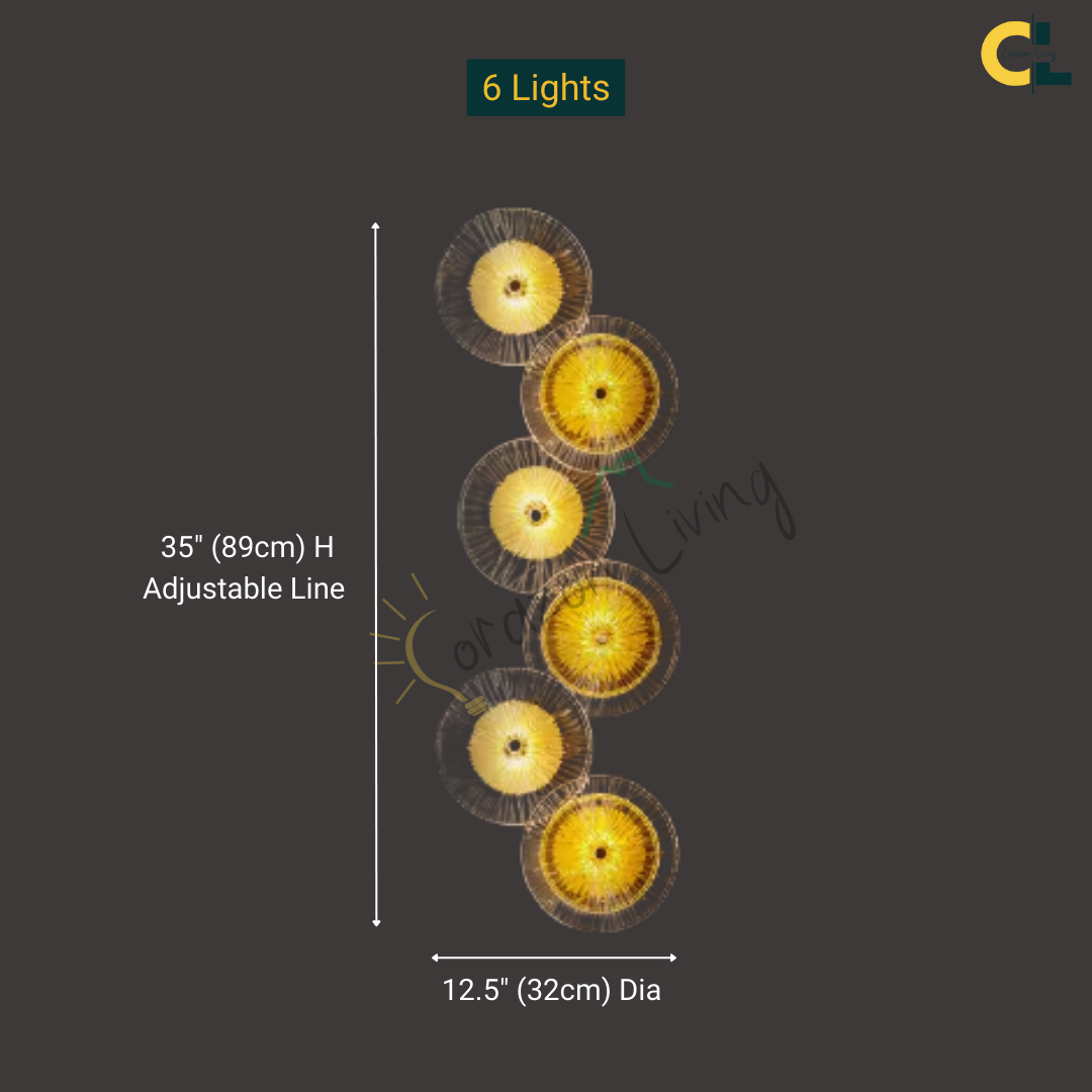 6 Lights: 12.5" (32cm) Dia x 35" (89cm) H - 30W