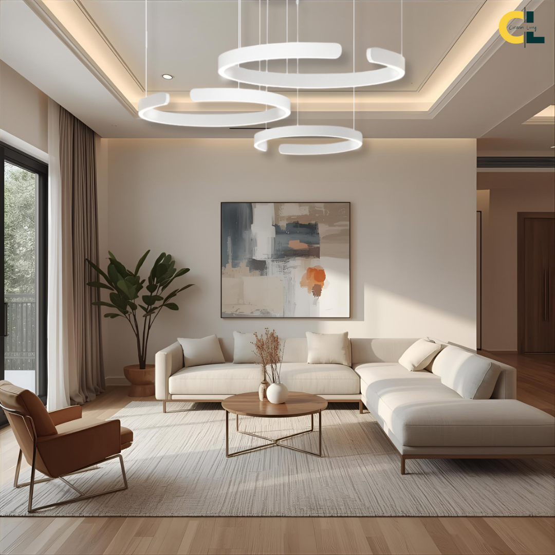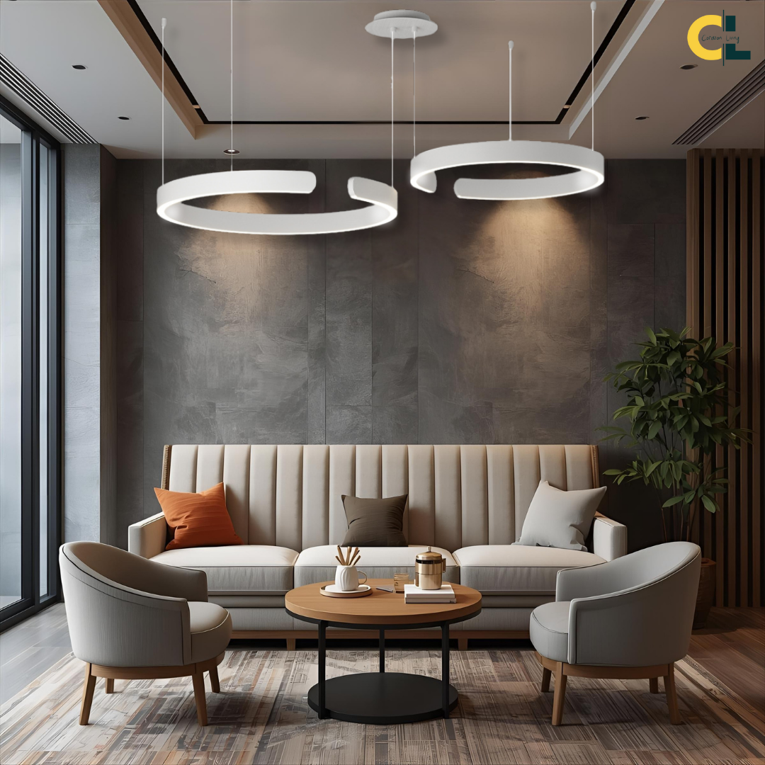 A sleek C-shaped LED chandelier that blends minimalist design with elegant, functional illumination for contemporary interiors.