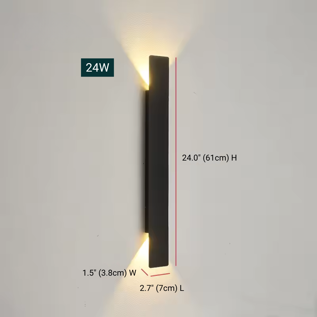 Modern vertical outdoor LED light made of durable iron and aluminum for stylish, long-lasting exterior illumination.