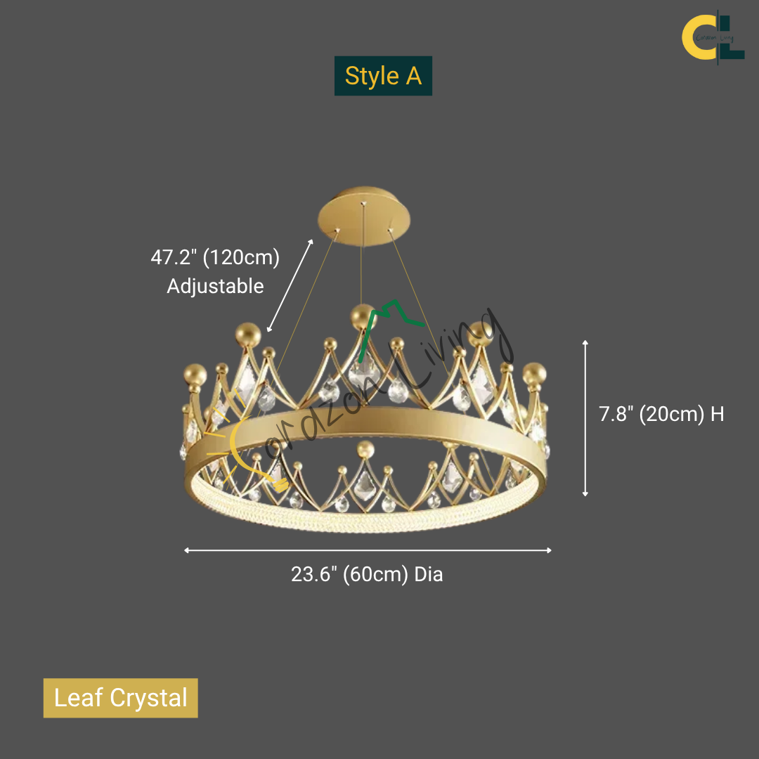 Bring royal elegance into your home with the Roxainne modern crown chandelier — a luxurious LED chandelier inspired by regal coronets. This exquisite ceiling fixture features a minimalist Nordic design with a modern twist, combining a matte gold crown frame with stunning crystal drops, available in Leaf or Waterdrop styles. Whether hung in a living room, bedroom, cloakroom, or dining area, Roxainne adds a statement of sophistication, making every space feel like a royal suite.