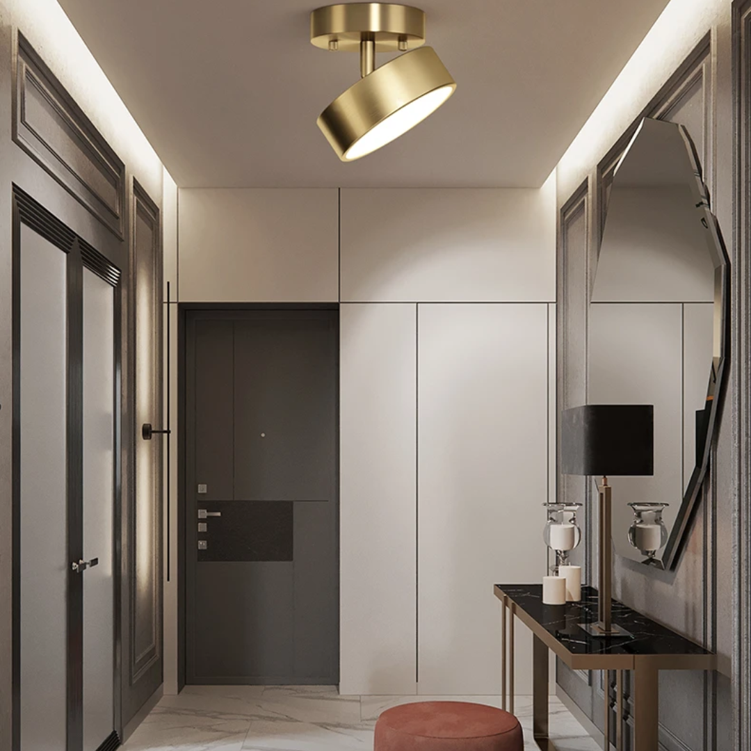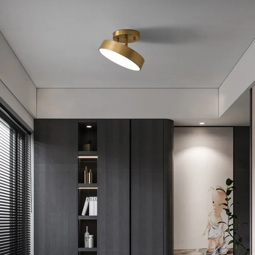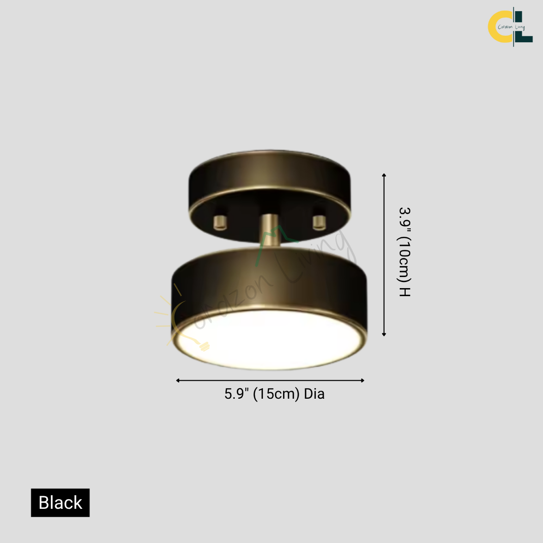 Bring modern elegance to your space with the Rozen Nordic LED Ceiling Lamp, a sleek and stylish lighting fixture designed for modern interiors. Featuring a minimalist round form with an adjustable angle design, this ceiling lamp is perfect for hallways, bedrooms, living rooms, studies, cloakrooms, and front porches. Made with a durable metal body in luxury gold or classic black, it delivers soft, glare-free illumination through high-quality LED lighting. Its compact profile and refined look make it an ideal choice for enhancing both functionality and décor in tight or transitional spaces.