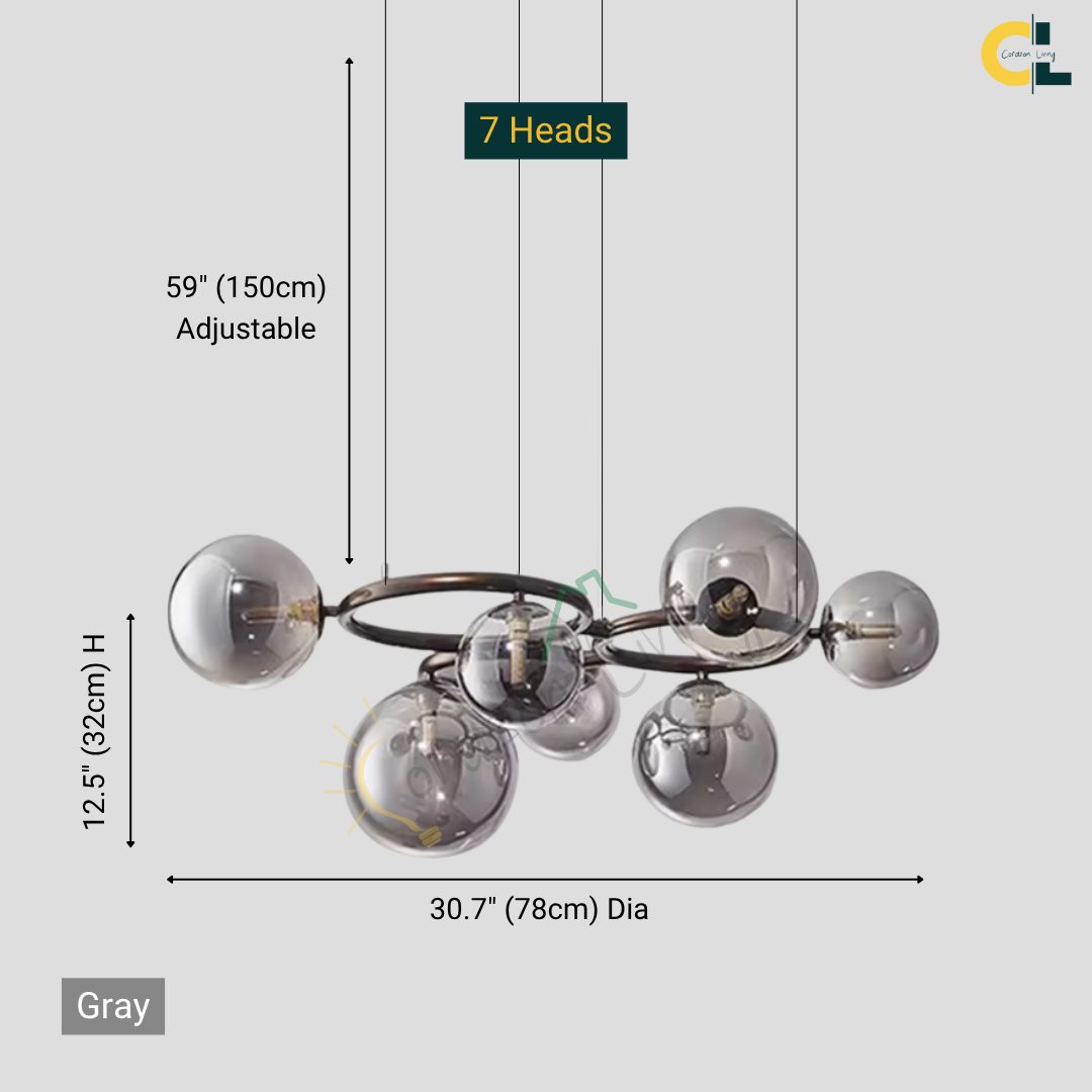 7 Heads: 30.7" (78cm) Dia x 12.5" (32cm) H x 13.2lbs (6kg) - 35W