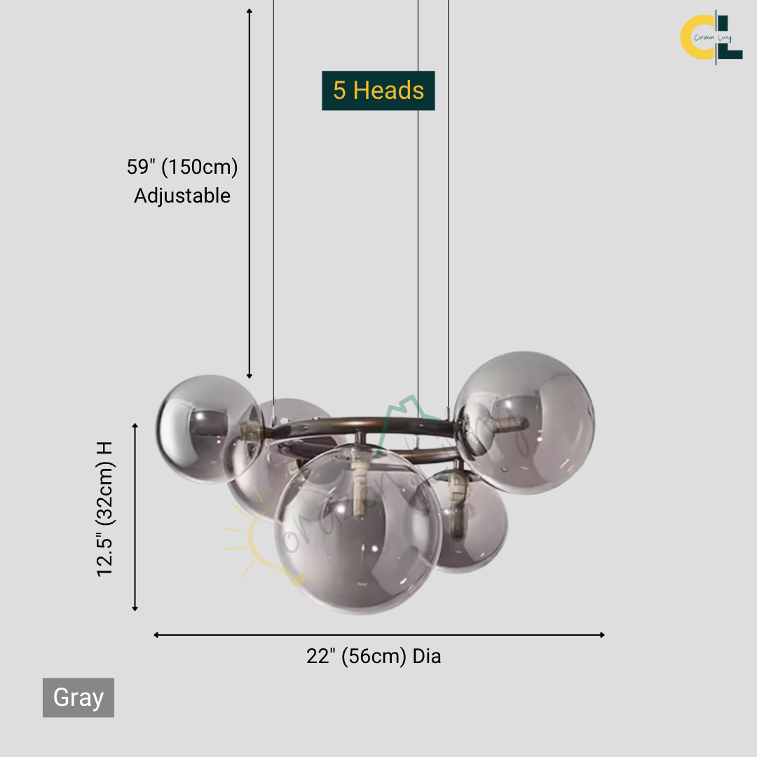 9 Heads: 393" (100cm) Dia x 12.5" (32cm) H x 17.6lbs (8kg) - 45W