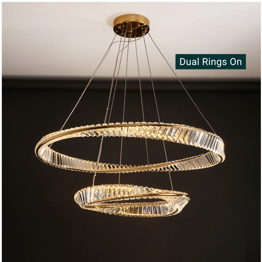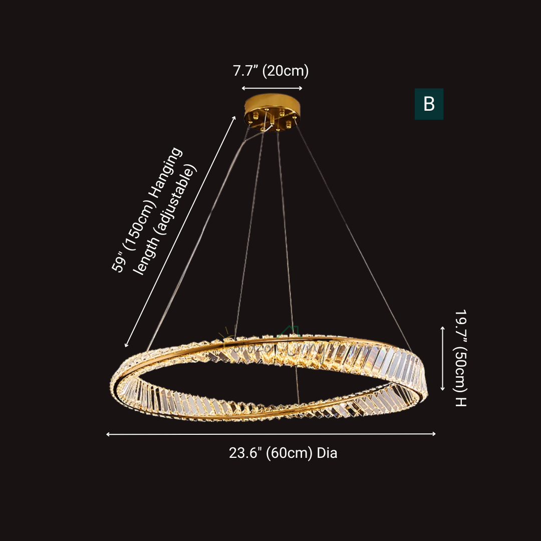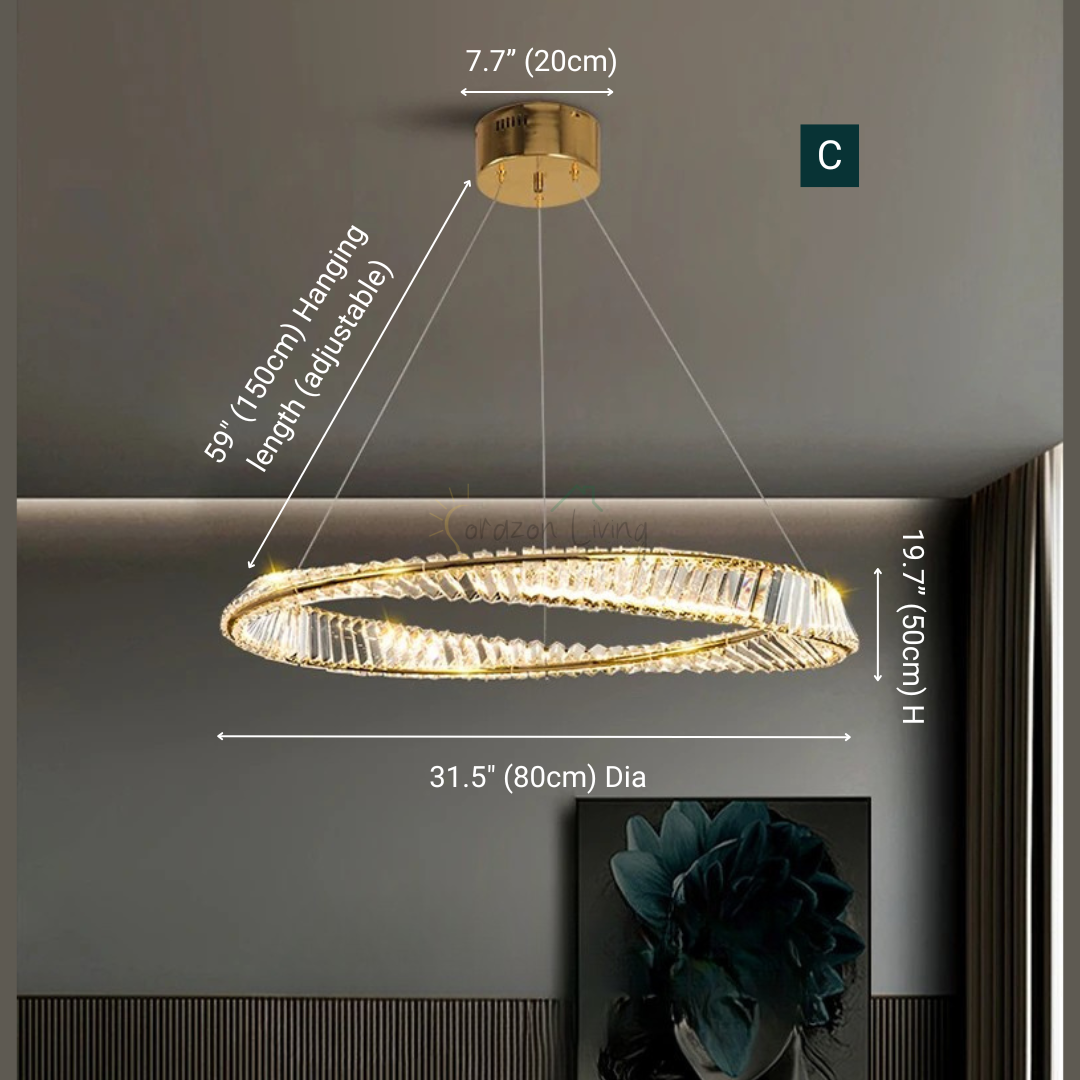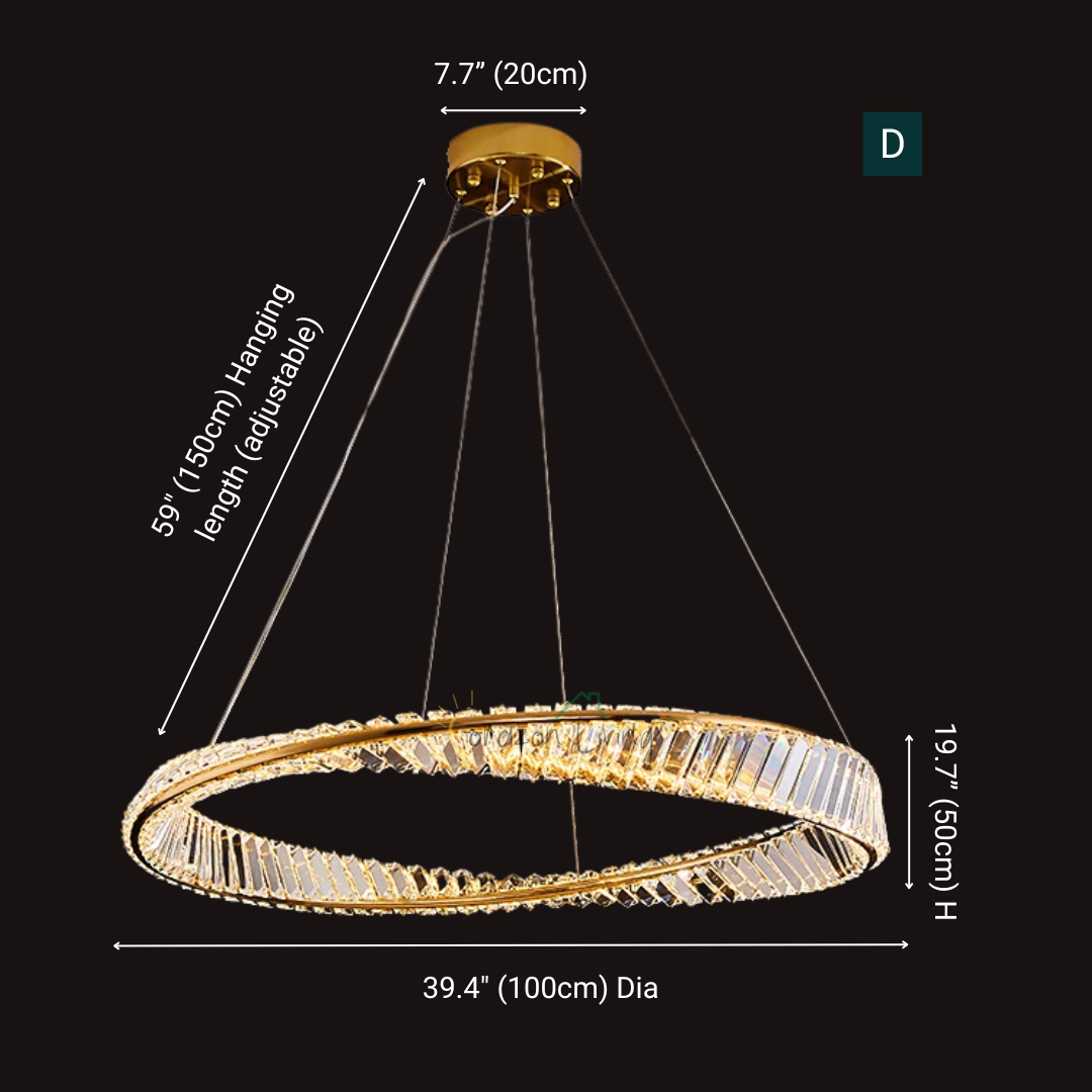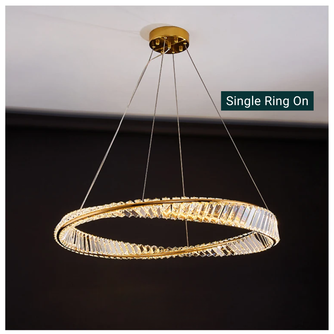 The Elegant Ring-Shaped Crystal LED Chandelier features a modern circular design adorned with sparkling crystals for a luxurious glow.