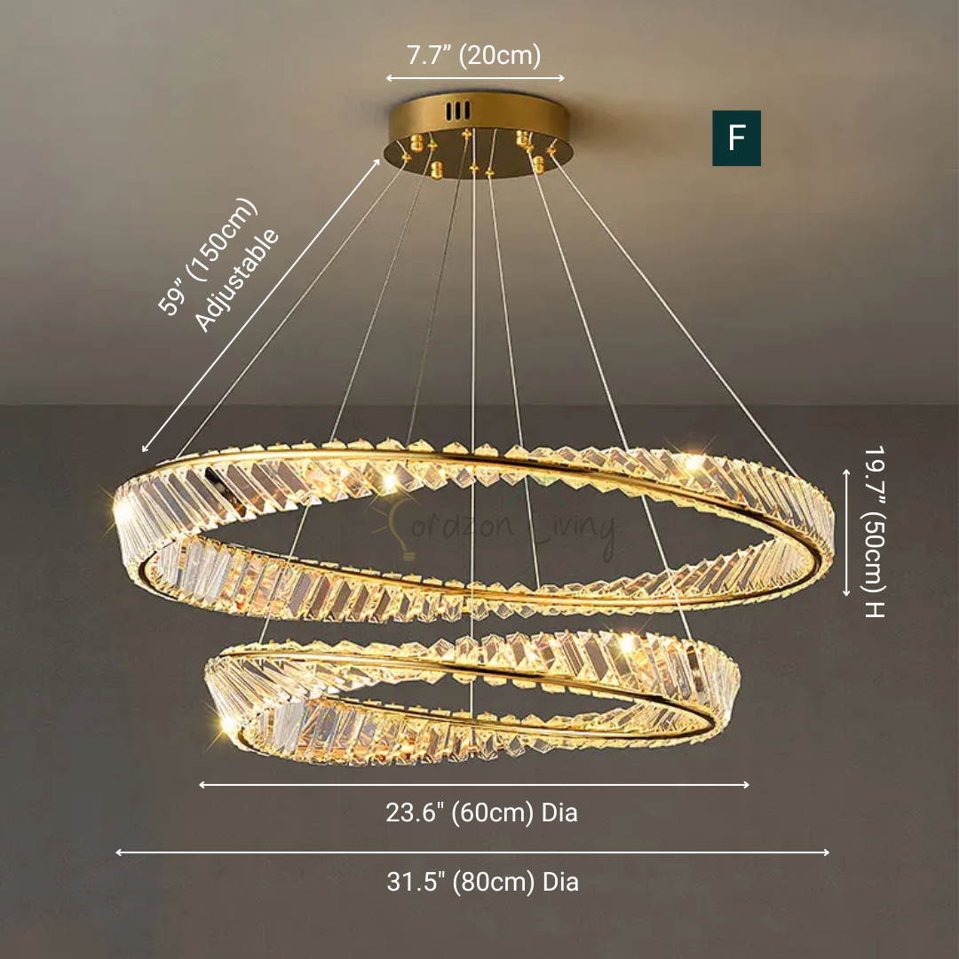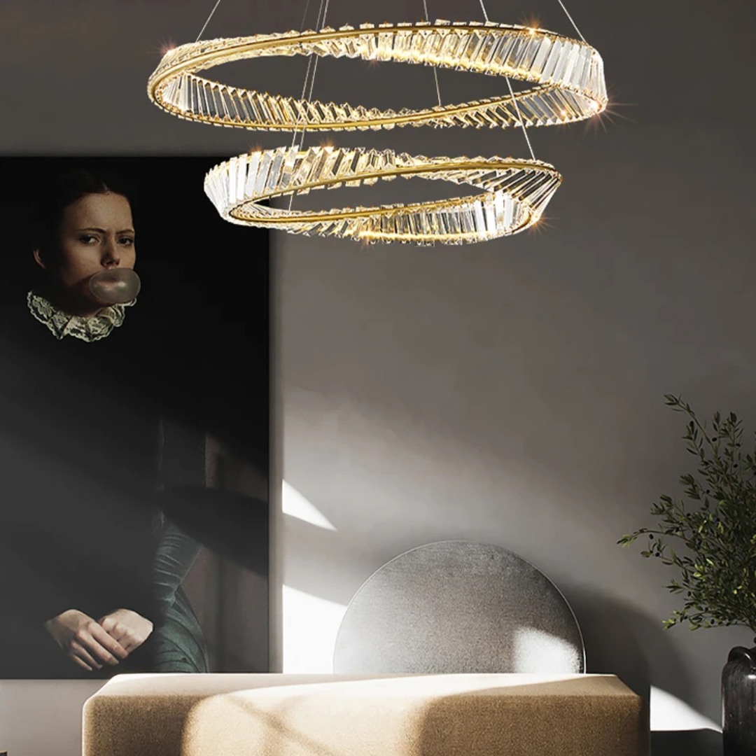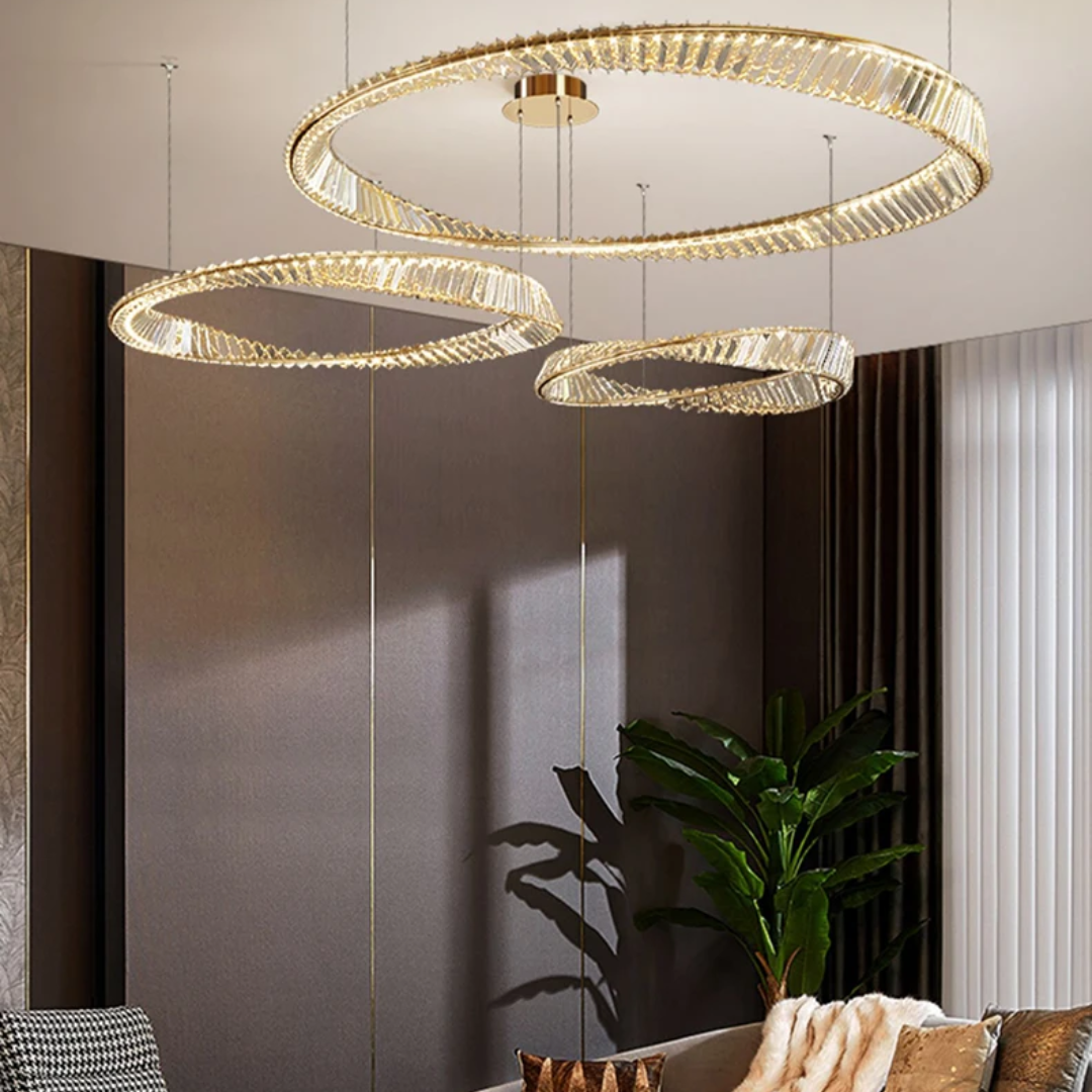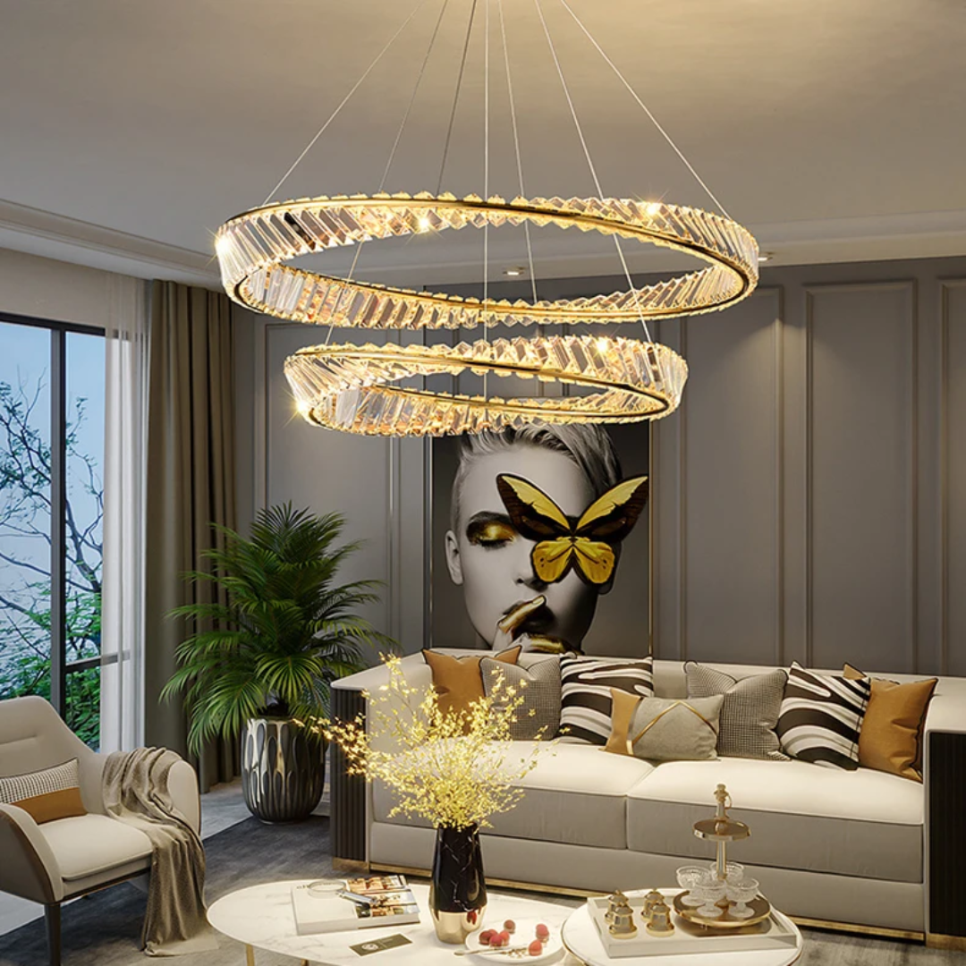 The Elegant Ring-Shaped Crystal LED Chandelier features a modern circular design adorned with sparkling crystals for a luxurious glow.