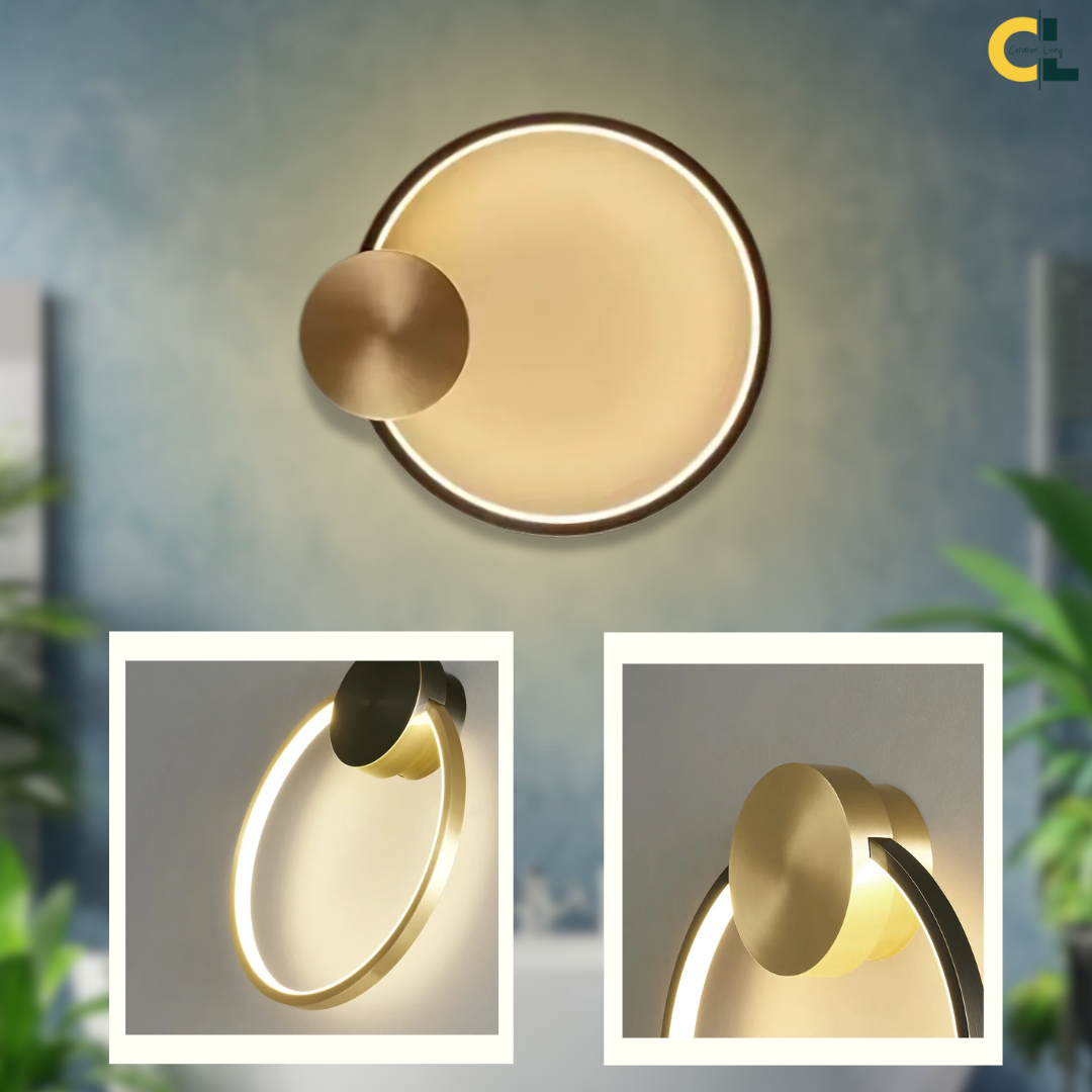 Brass ring LED wall light with Art Deco and Nordic minimalist design