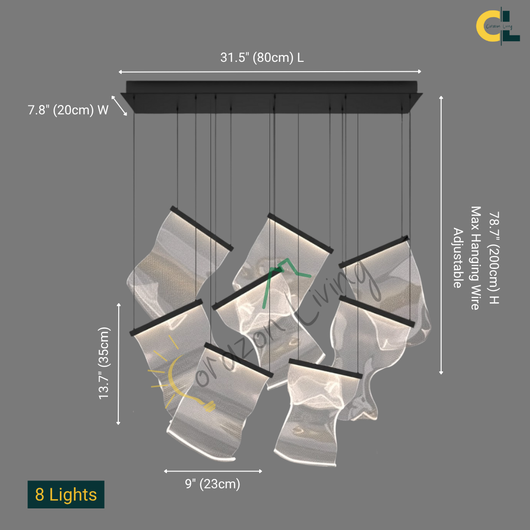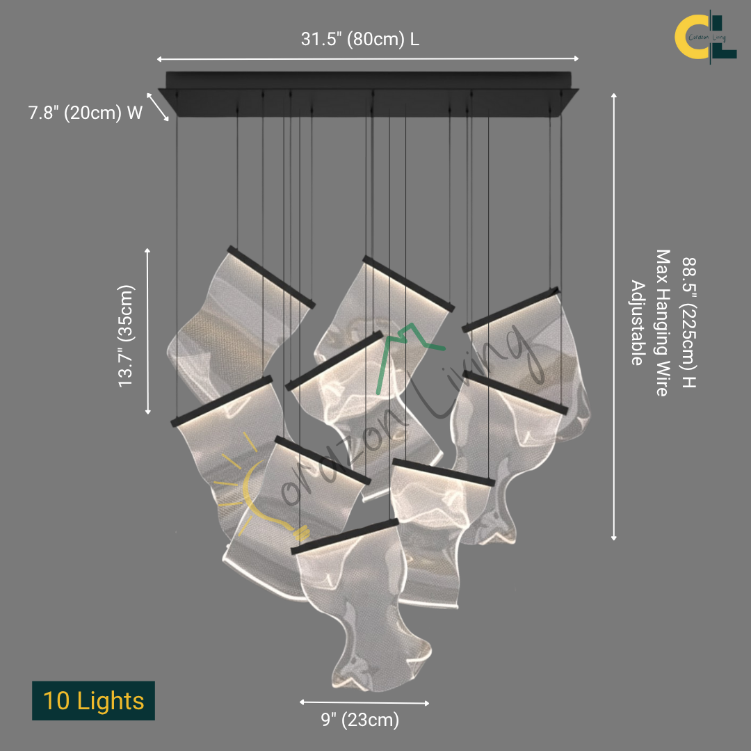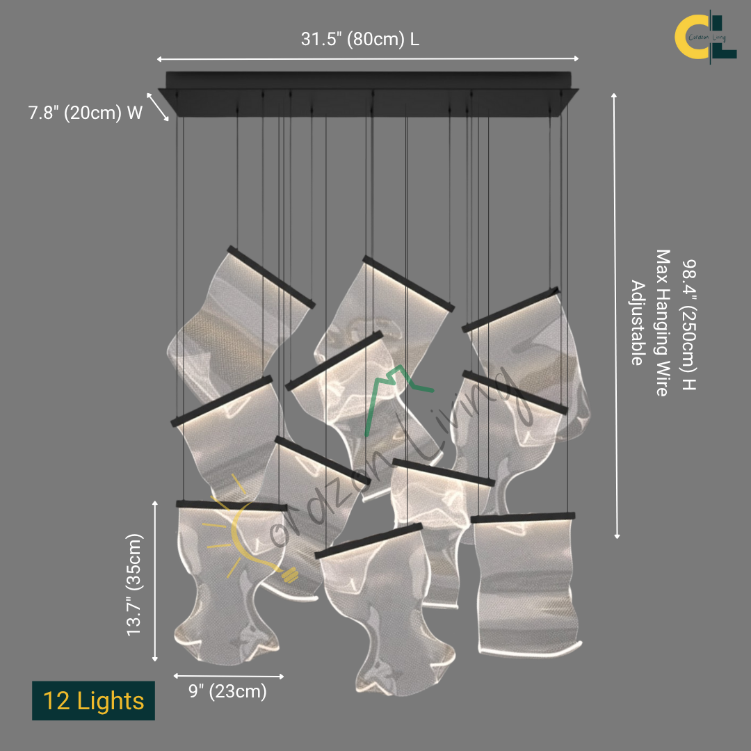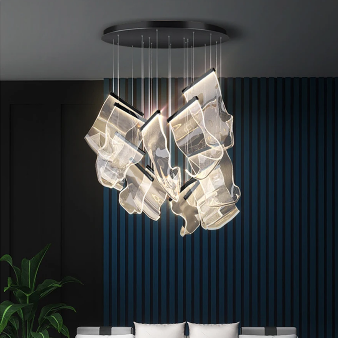 The Sculpted Lightwave LED Chandelier features a modern, flowing design that illuminates any space with artistic elegance.