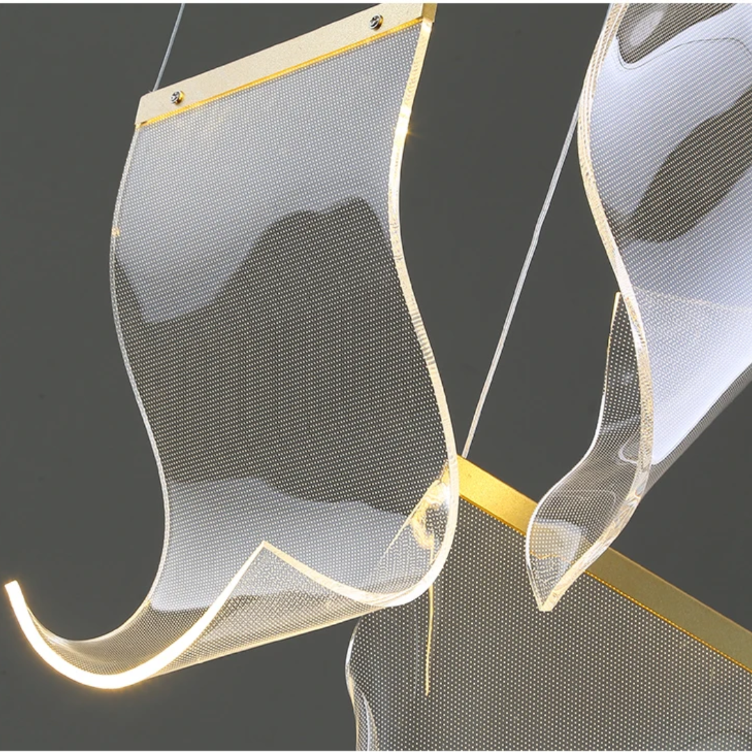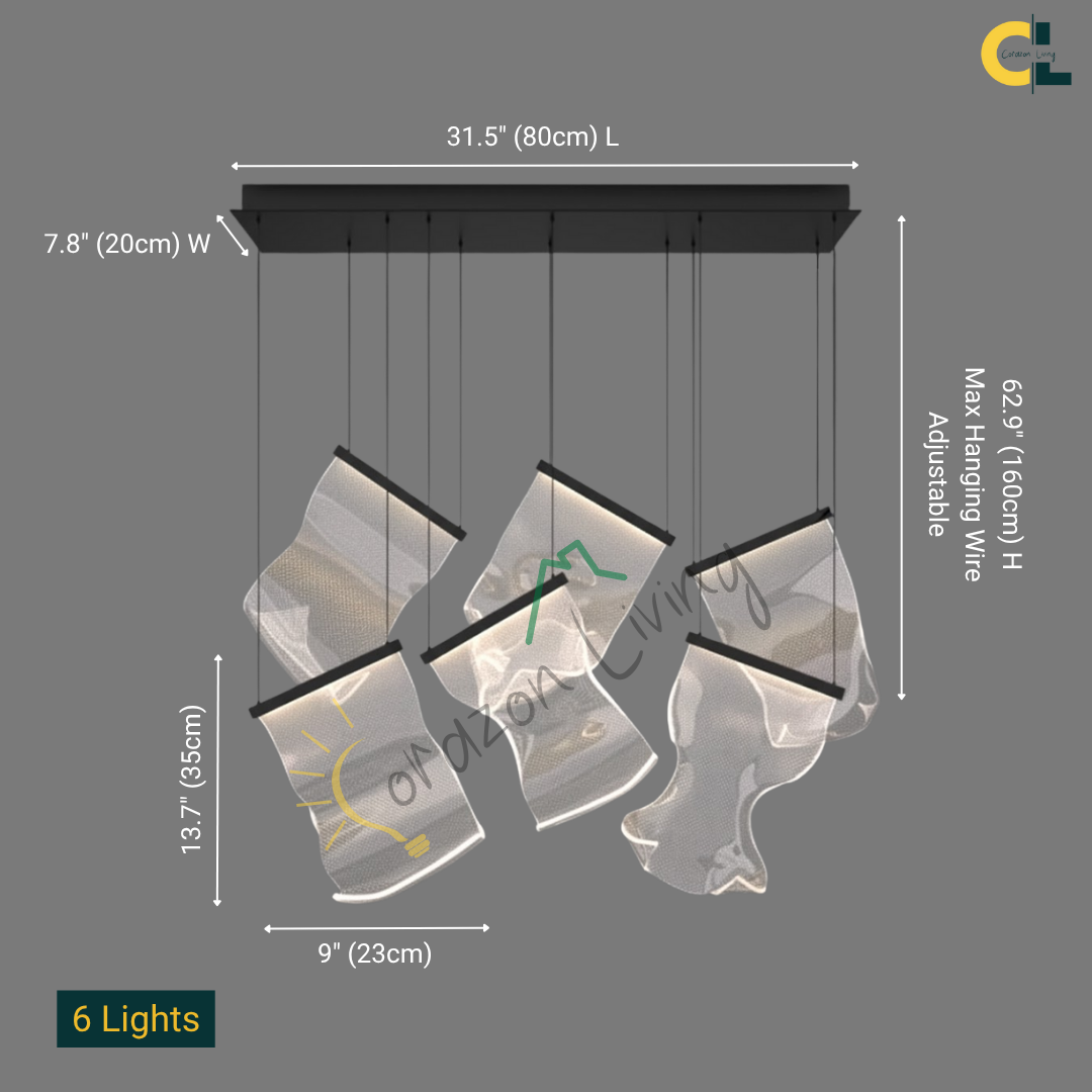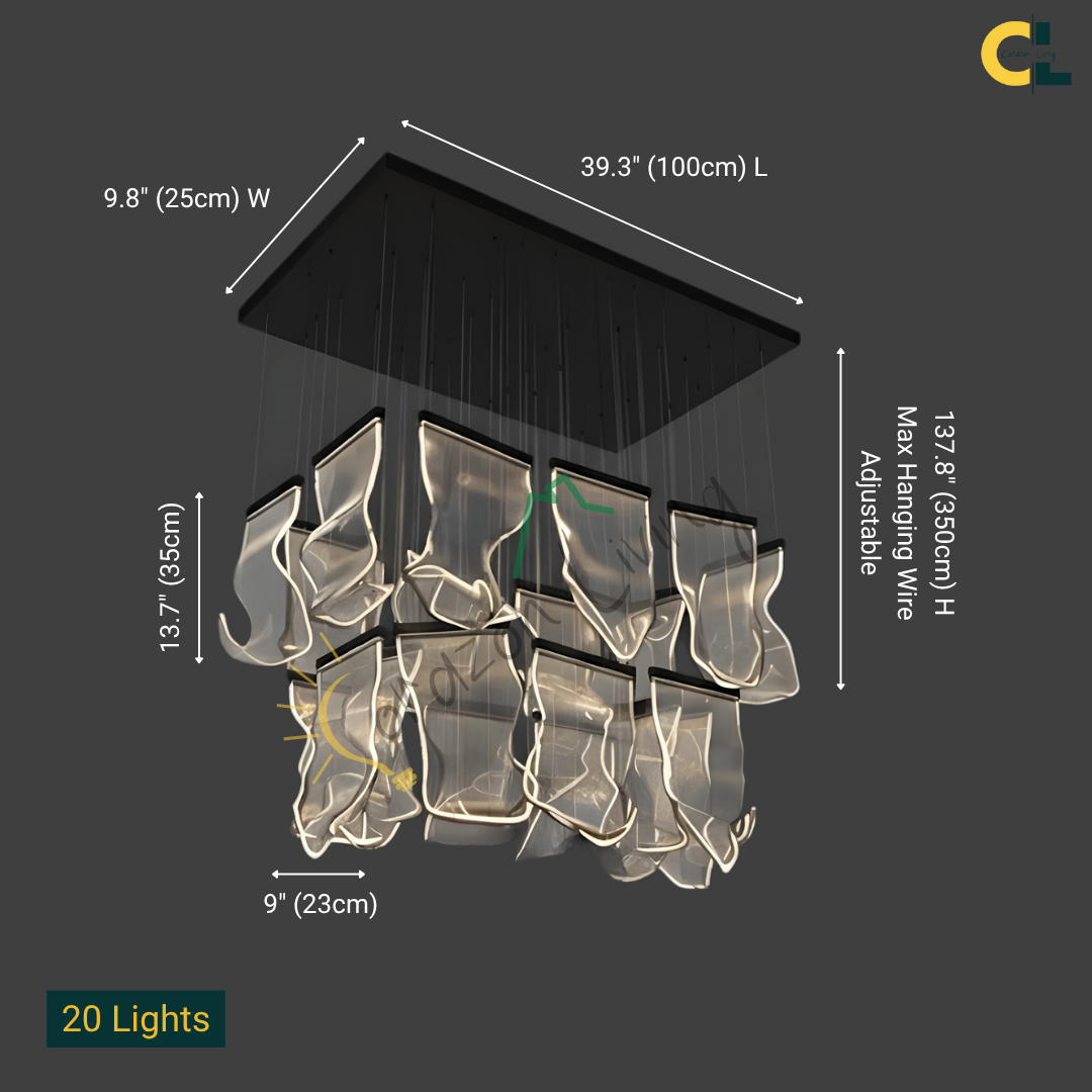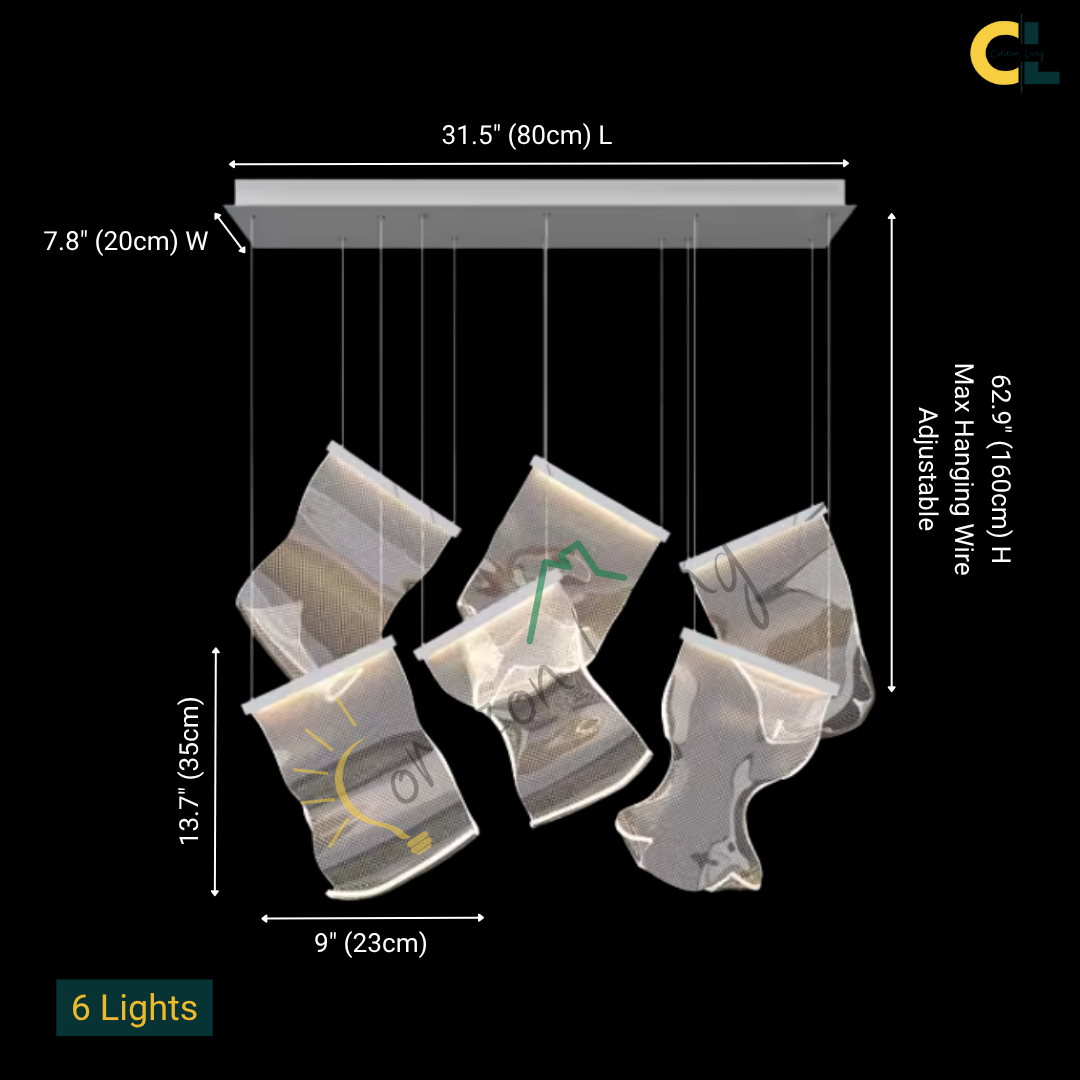 The Sculpted Lightwave LED Chandelier features a modern, flowing design that illuminates any space with artistic elegance.