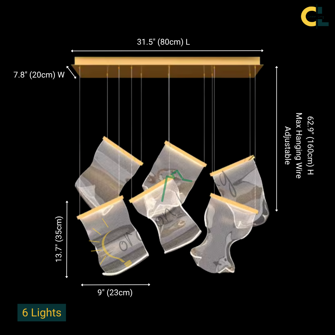 A - 6 Lights - 19.6" (50cm) Dia x 62.9" (160cm) H