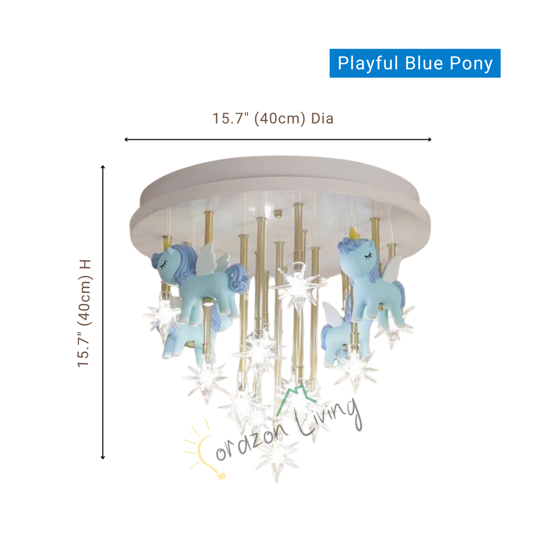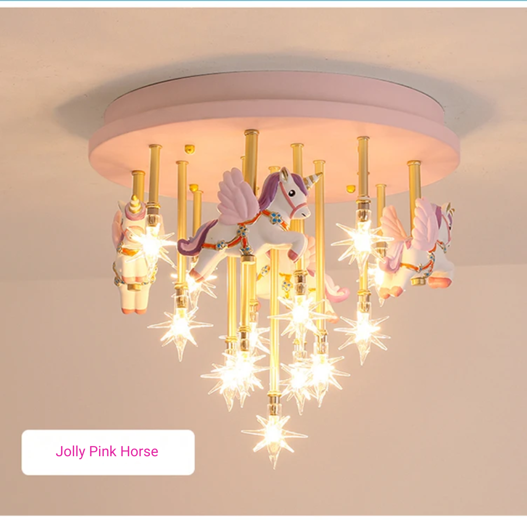Bring fun and imagination to your child’s room with the whimsical merry-go-round horse ceiling light, combining charming design with bright lighting.