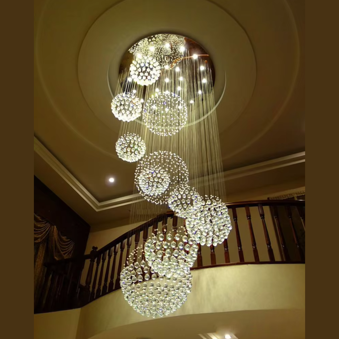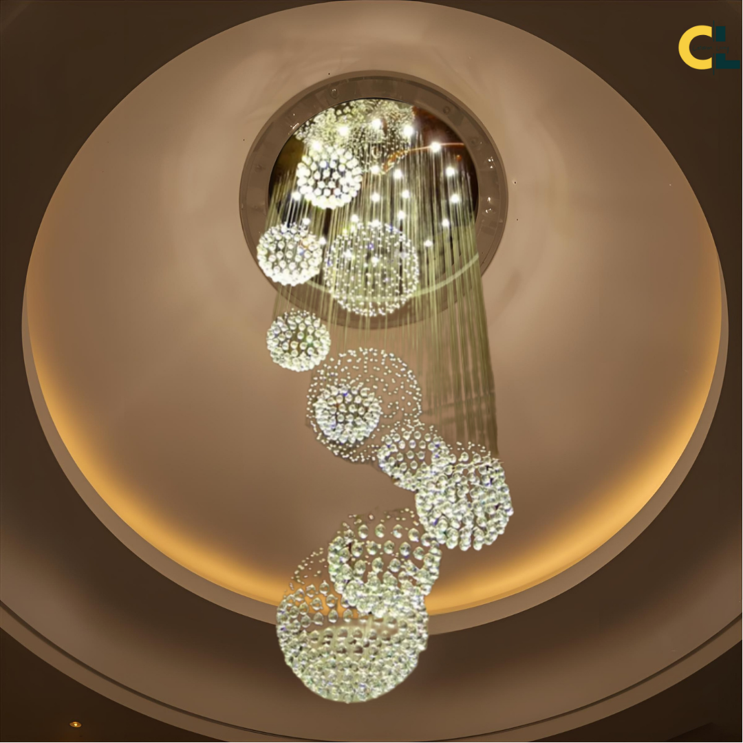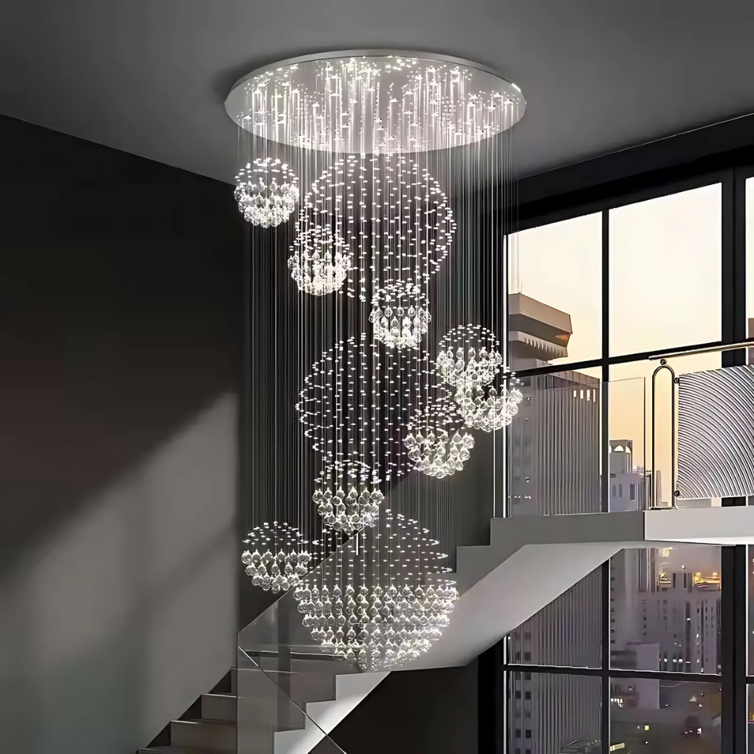 Step into a world of refined beauty with the Stellar Chandelier, a masterpiece of design and craftsmanship. Featuring an intricate arrangement of precision-cut glass crystals, this chandelier creates a mesmerizing 3D effect—each delicate sphere catching and reflecting light in a breathtaking display of shimmer and brilliance.