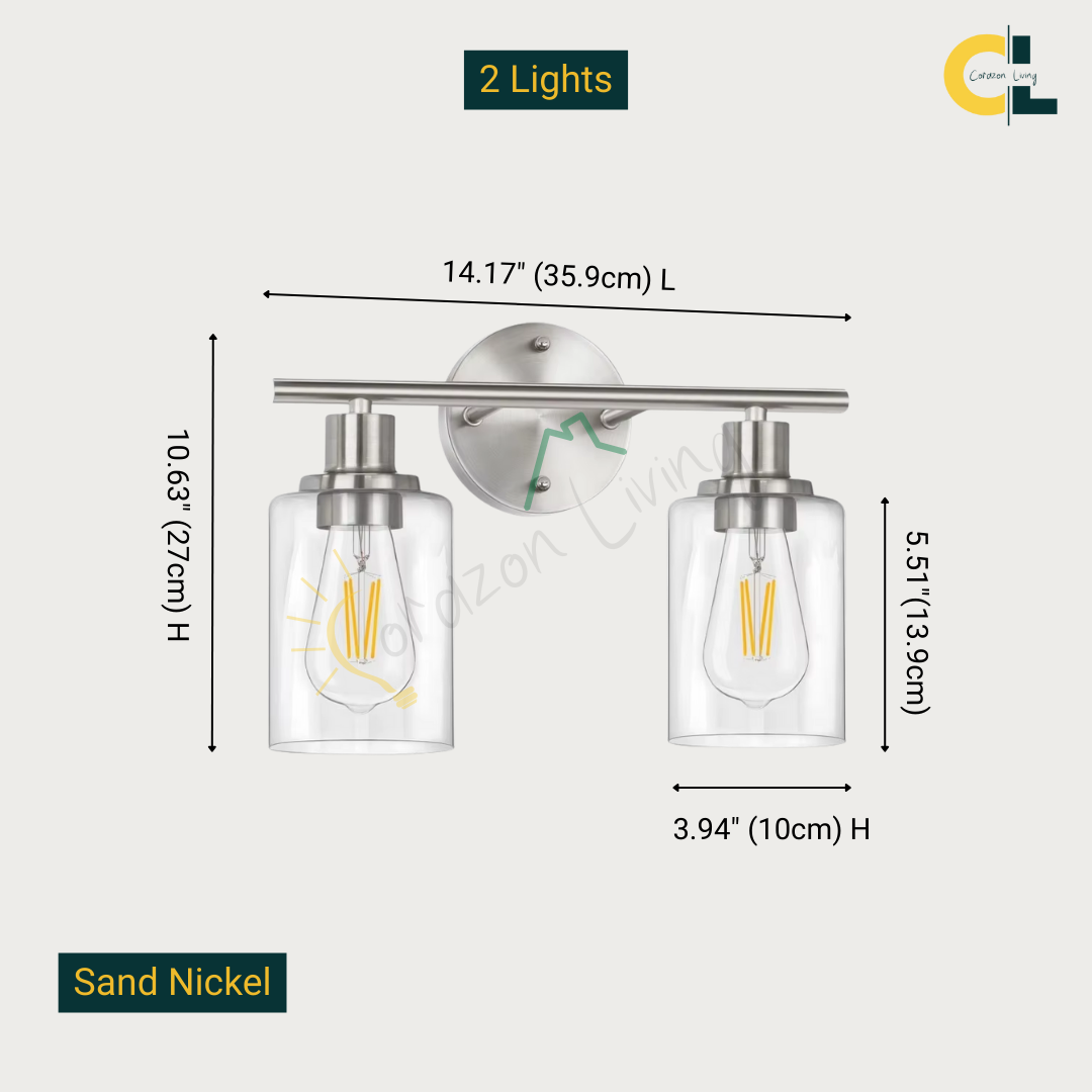 Perfect for bathrooms, living rooms, bedrooms, or hallways, its streamlined design enhances any interior while providing bright, balanced lighting. The clear glass shades allow the bulbs to shine fully, creating a clean, inviting glow that complements both modern and classic décor.
