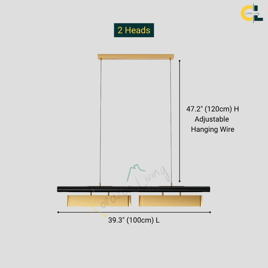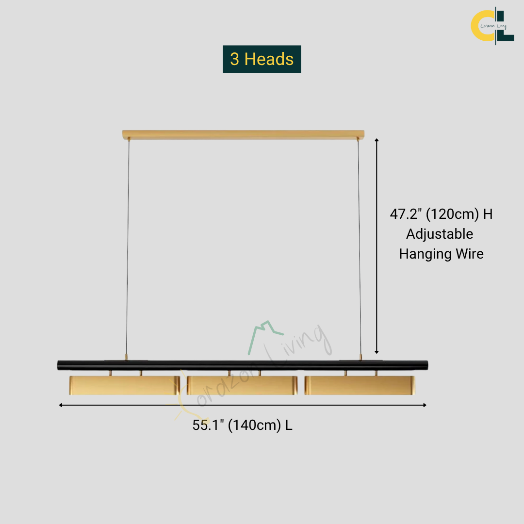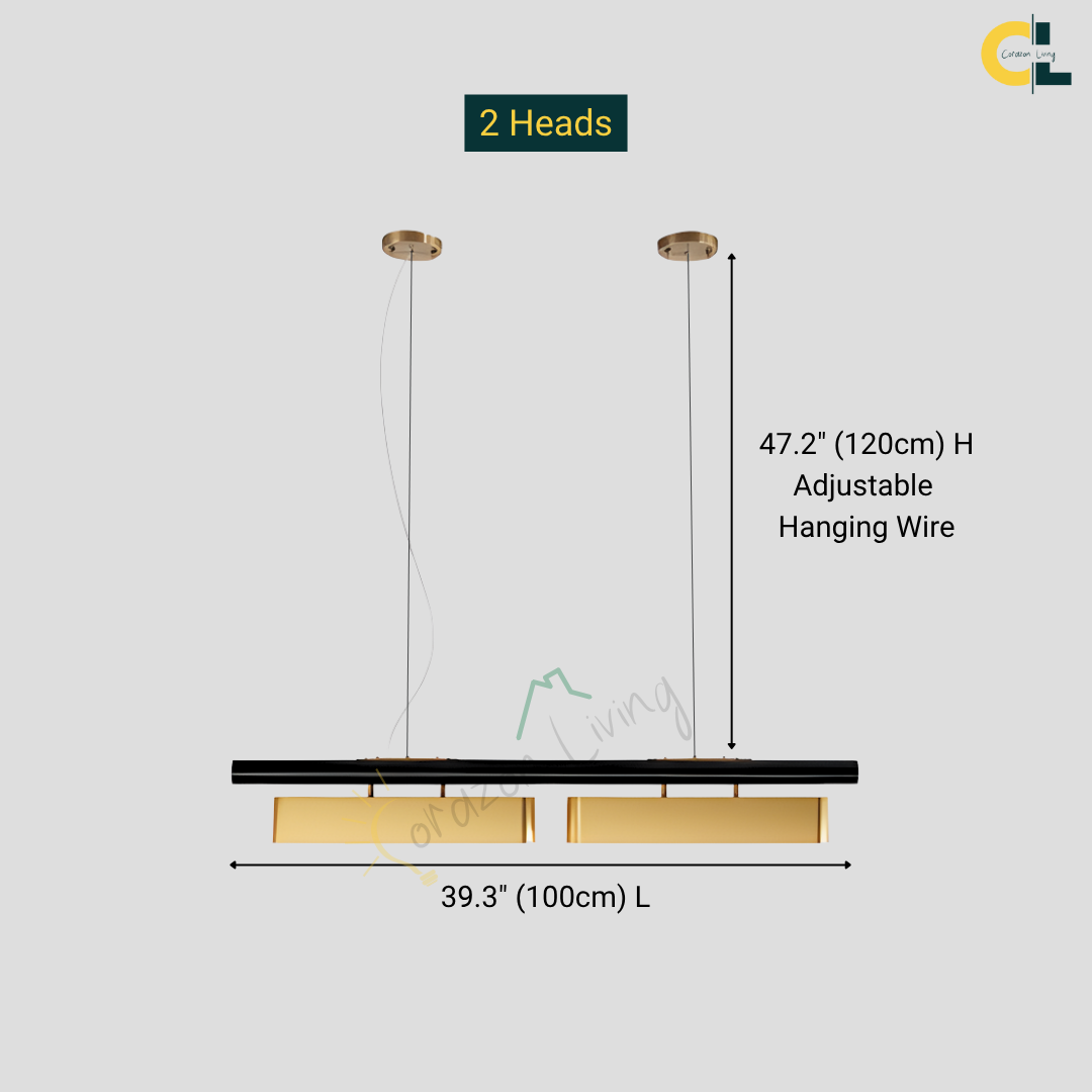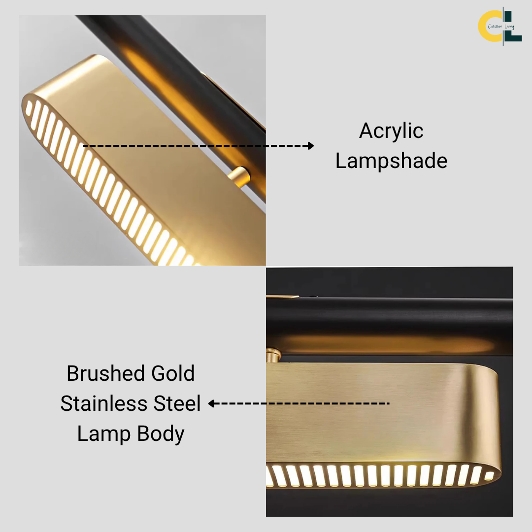 A statement lighting piece that embodies postmodern sophistication with a golden stainless steel finish, refined craftsmanship, and adjustable luminous elegance.