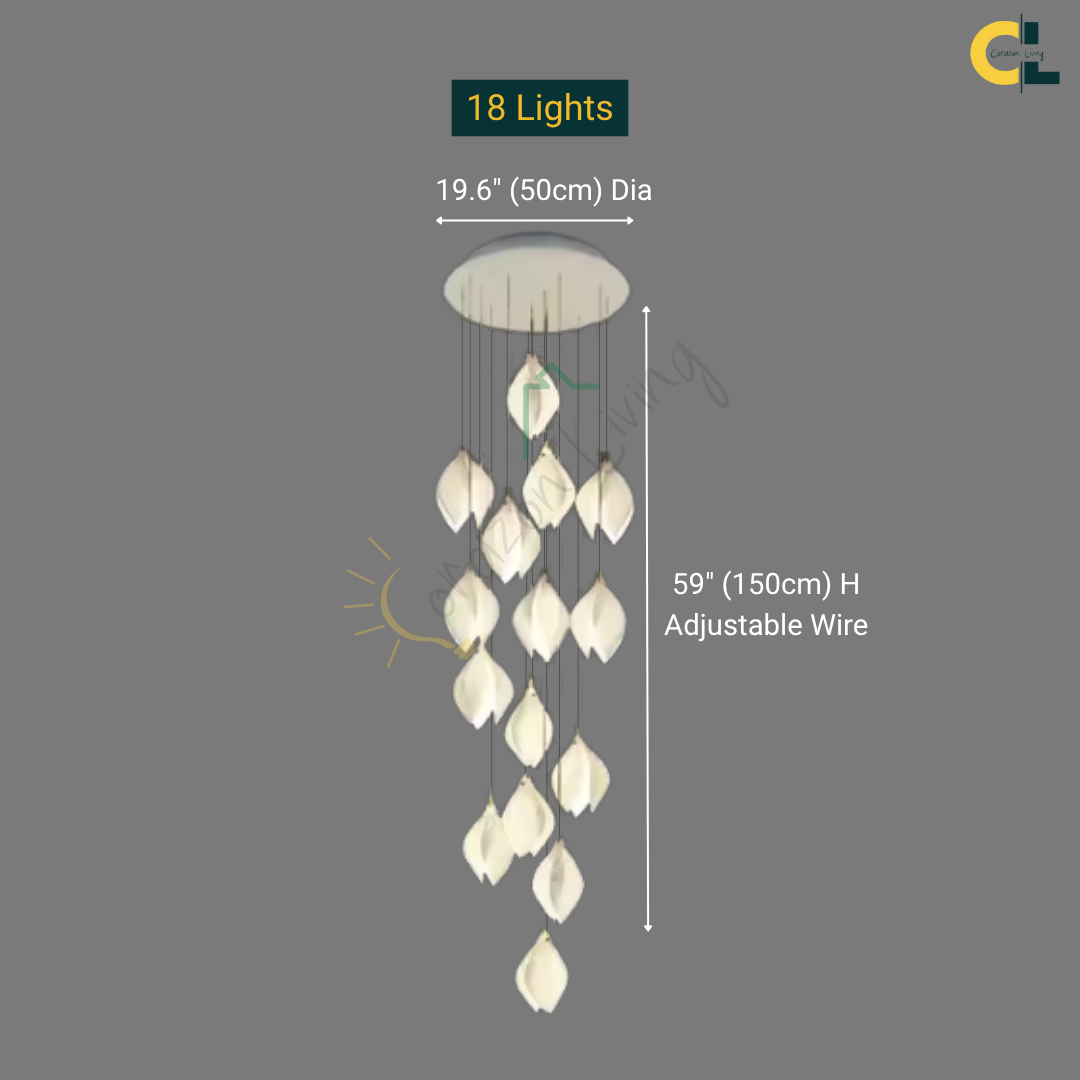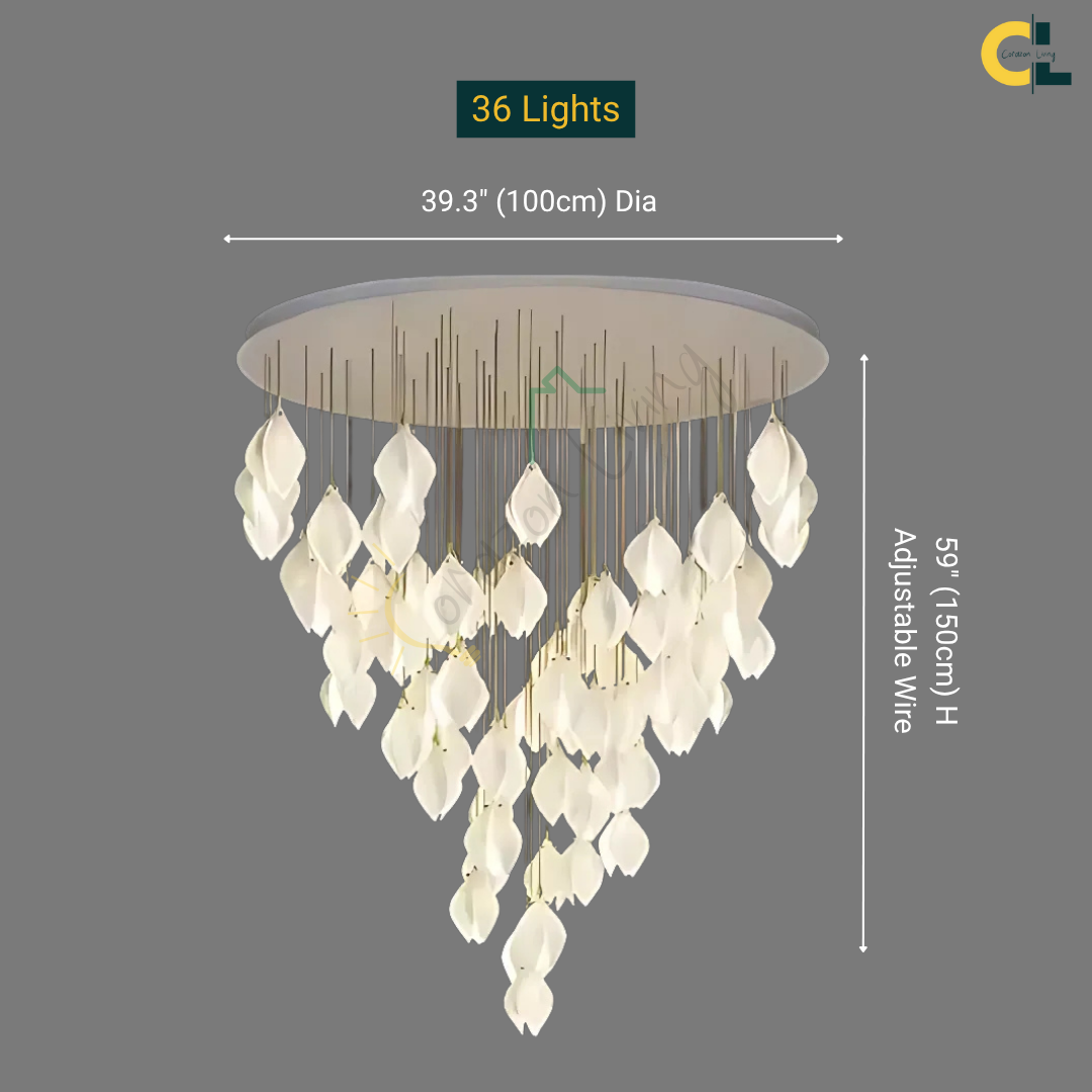 Elevate your space with the Vesper Glow chandelier, a sophisticated fusion of art and illumination. Crafted with delicate ceramic petals, this chandelier casts a warm, inviting light while making a bold design statement.Ideal for luxury interiors, the Vesper Glow transforms any space into a serene and stylish retreat.