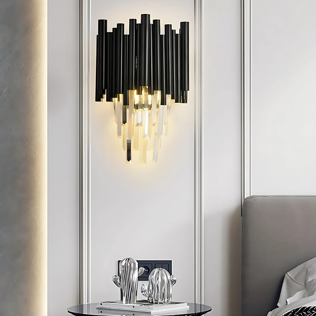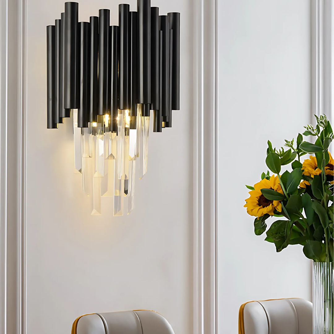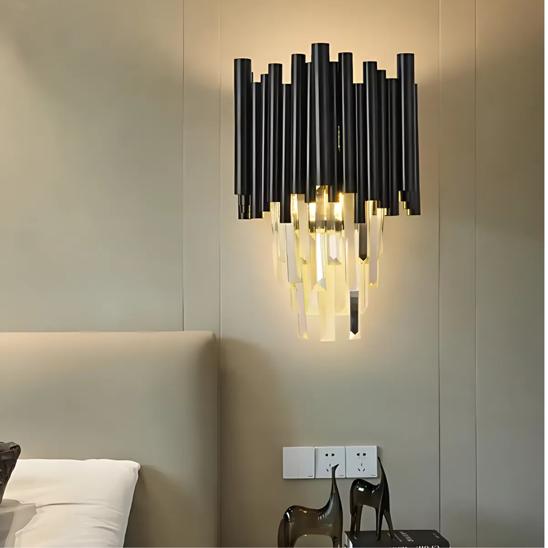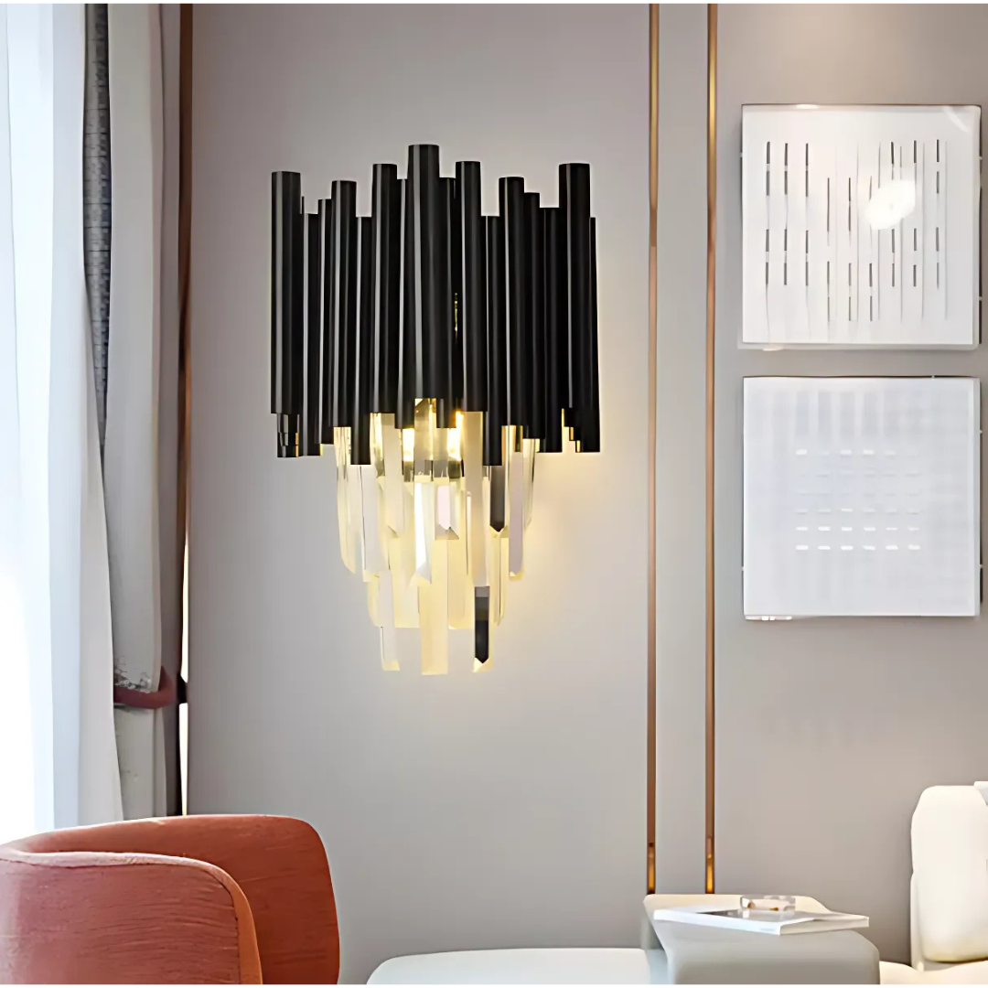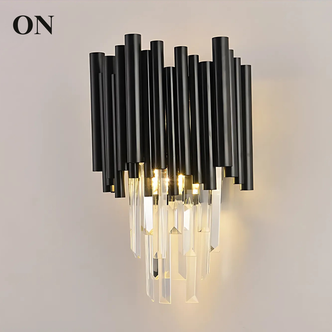 The Sleek Black and Crystal LED Wall Light combines modern black accents with sparkling crystals for elegant, stylish illumination.