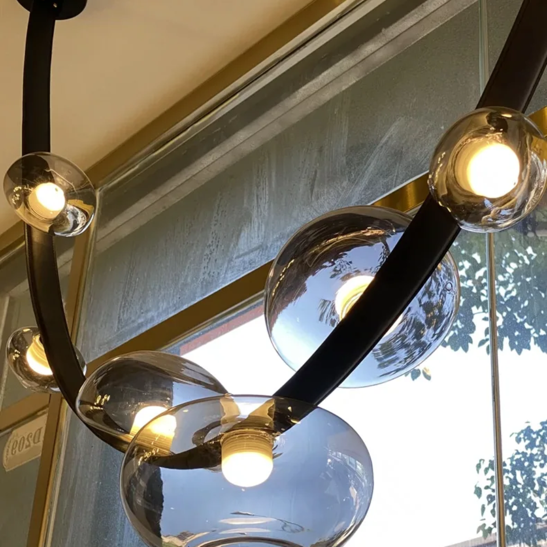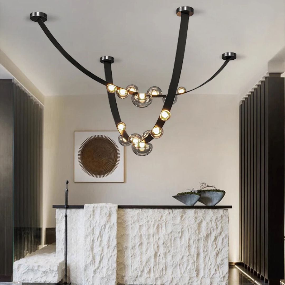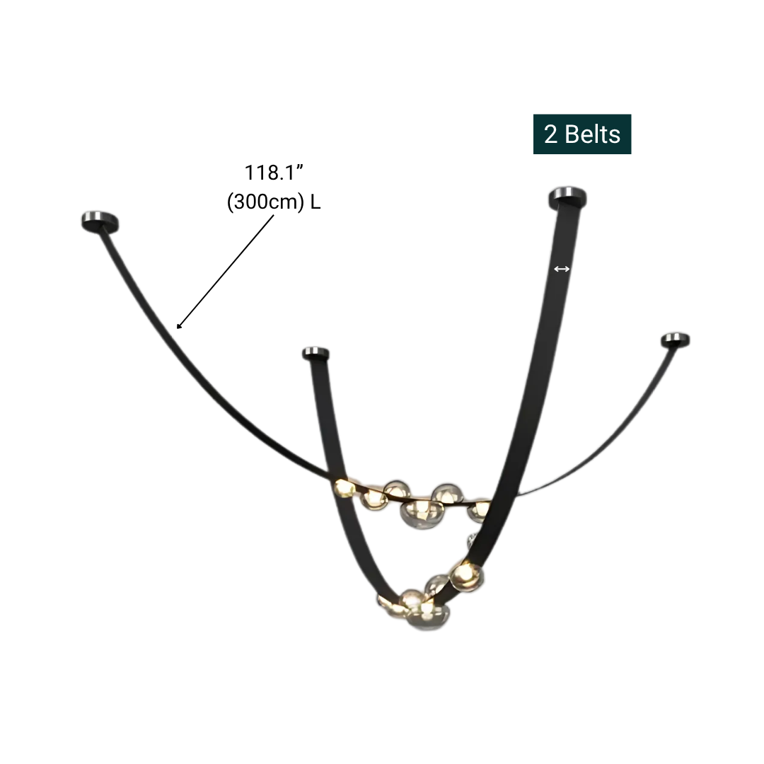 Introducing Virelle — a bold, sculptural pendant light that wraps light in a graceful belt-like form. Crafted from rich leather straps and sleek iron hardware, Virelle brings a minimalist edge with luxurious detail.