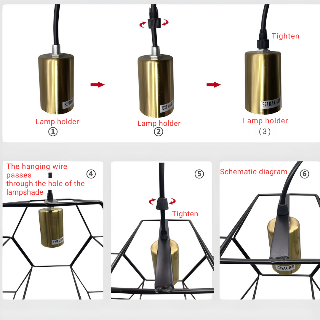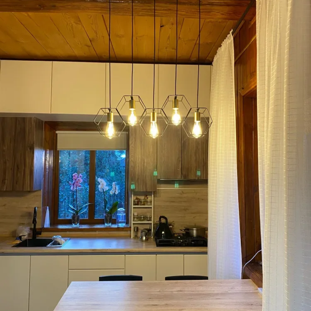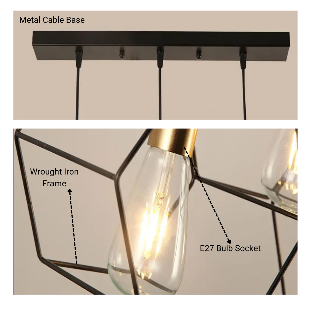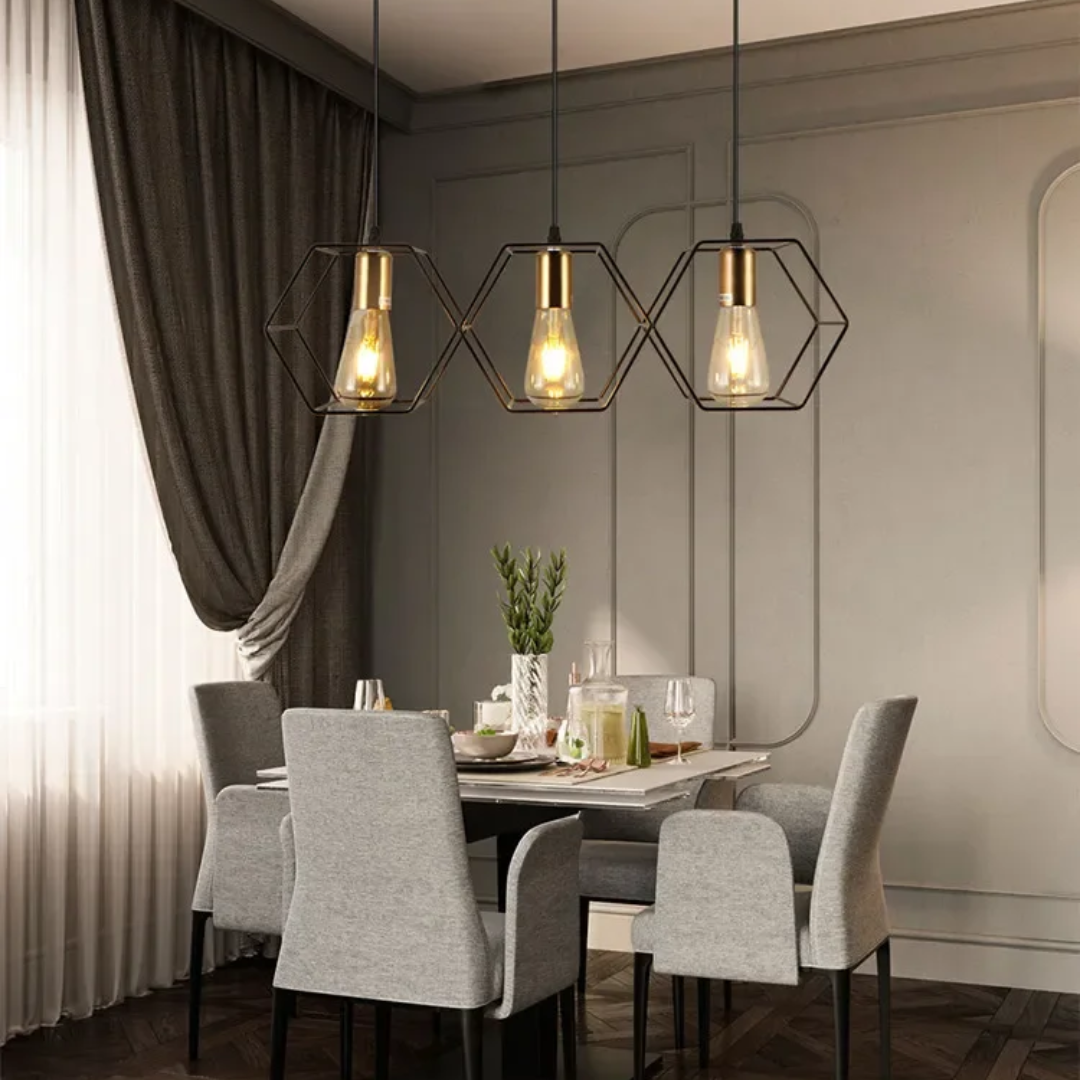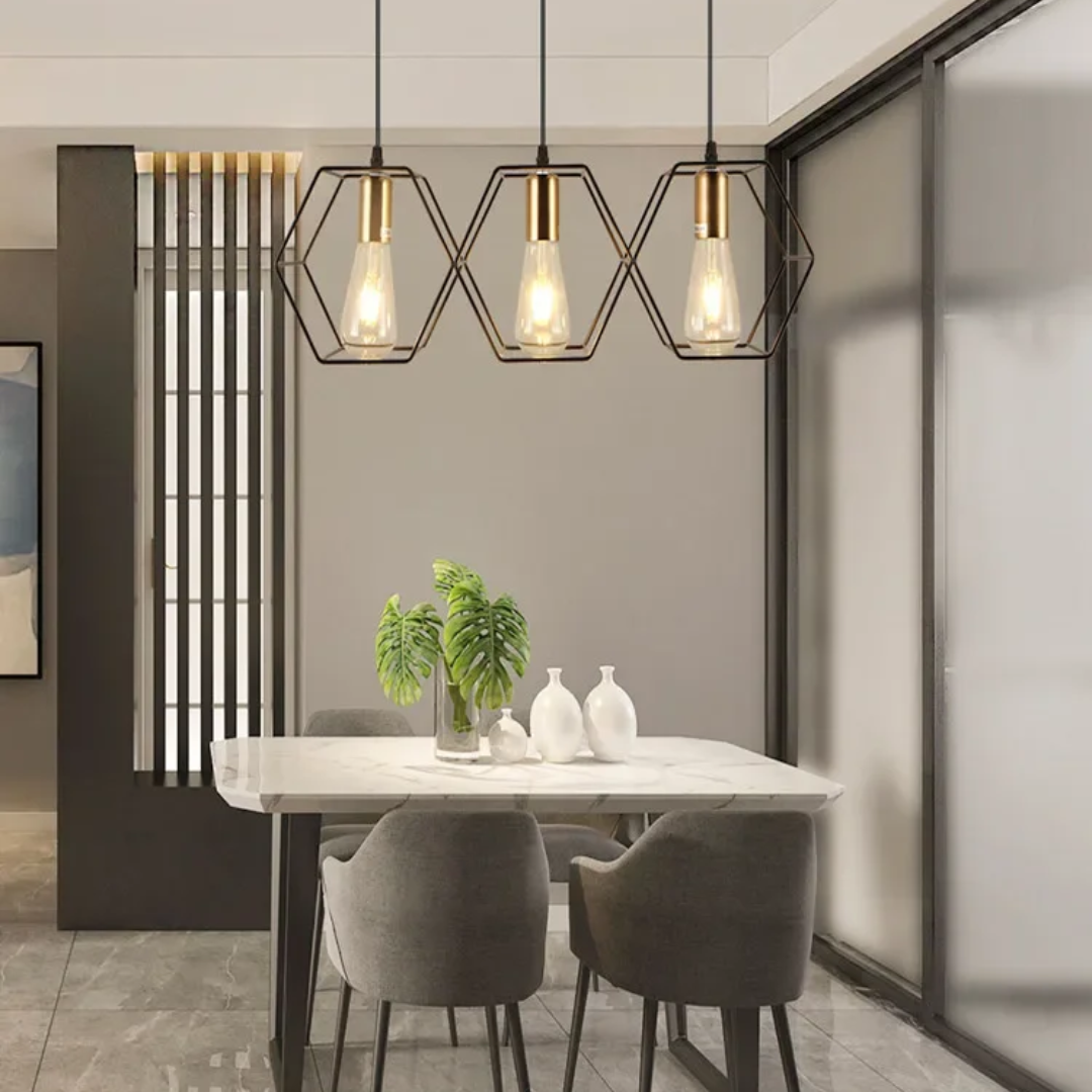 Add a bold, industrial-modern touch to your space with the Ynara Retro Geometric Chandelier, available in two eye-catching styles: hexagonal and cylindrical. Featuring a sleek iron frame with a minimalist design, this is perfect for dining areas, cafes, restaurants, clothing stores, and bedrooms. Its open-frame structure allows for full light exposure while creating a contemporary focal point, and the E27 socket offers versatile bulb options to suit your lighting needs.
